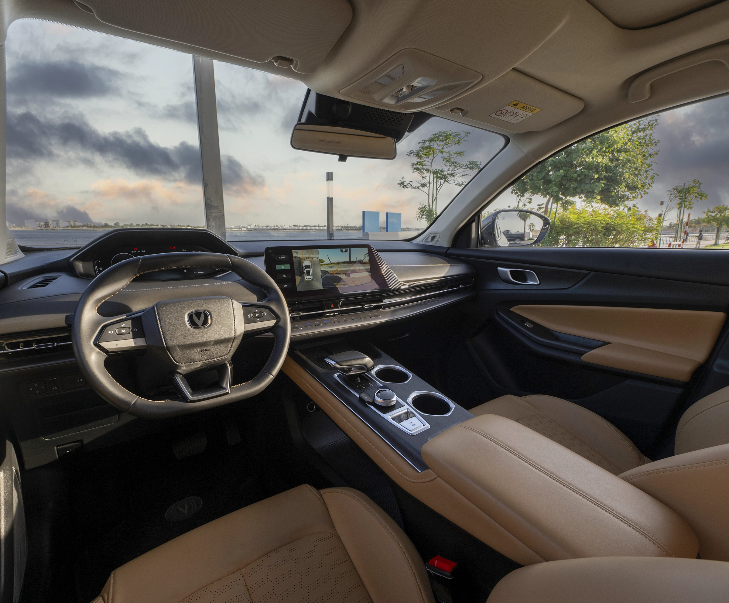 مقصورة رحبة بتفاصيل أنيقة، مجهزة بشاشات ذكية تدعم الأوامر الصوتية، لتجربة قيادة ممتعة ومريحة