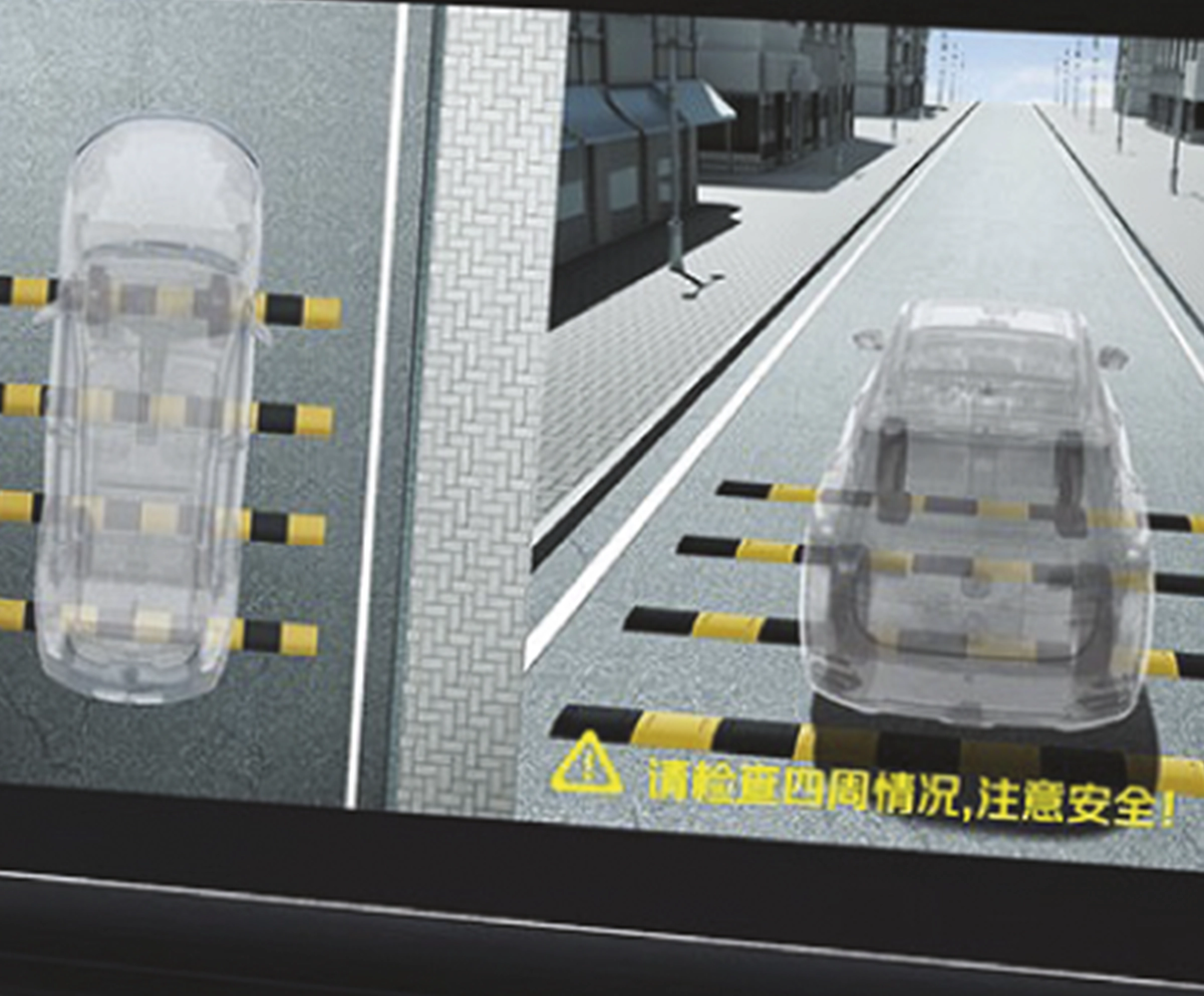 كاميرا °540 درجة تظهر جميع الزوايا المحيطة كما تُظهر المركبة بشكل شفاف لرؤية كاملة